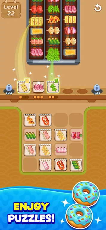 在《烧烤时光》中,您的主要任务是将滑动在传送带上的烤串引导到正确的盒子中。每个盒子代表着不同的食材类型,您需要敏锐的观察力和手速来确保每串串都是被准确归类。这种快节奏的分类方式不仅充满乐趣,还有助于锻炼您的反应能力和逻辑思考。