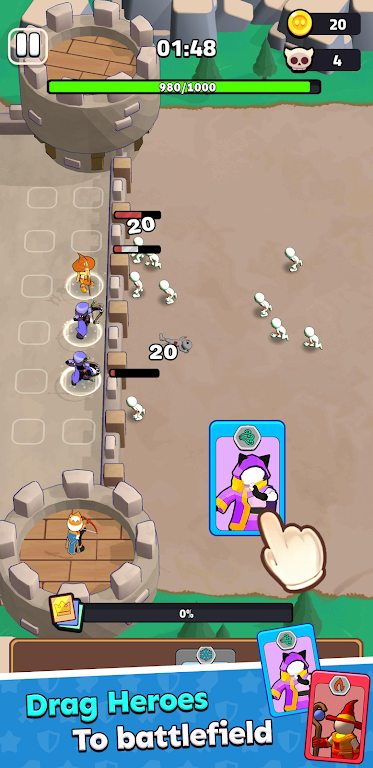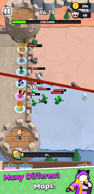 在游戏中,您可以解锁多种卡牌,包括弓箭手、法师和猎人等不同类型的单位。每种单位都有其独特的技能和特点,合理搭配它们可以产生意想不到的效果。通过不断升级这些卡牌,您不仅可以增强单位的能力,还能为战斗注入更多的策略变化,为战斗增添更多的乐趣。