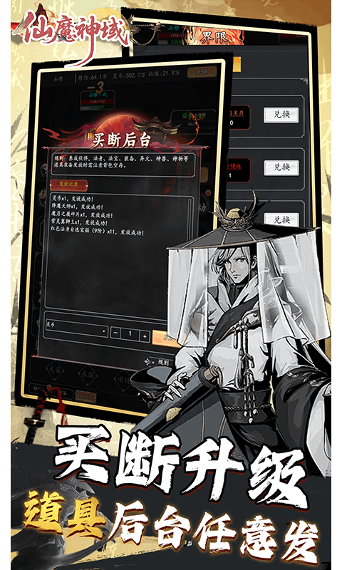 《仙魔神域(0.05折买断无忧版)》是一款文字修仙游戏,我欲成仙,渡劫飞升。全场0.05折!!开宗立派结识各路道友,沉浸式修仙,凡人逆天命。放置成长,完成任务即可领奖,每日登录惊喜不断,各种稀有材料,等你畅游修真界。在奇异修真世界,浩瀚星空,无尽苍穹,斩妖除魔,炼丹炼器,法宝神器等你都可以一一体验,构建千万修真小说迷修真梦,渡劫踏仙门,追逐修真长生之旅。