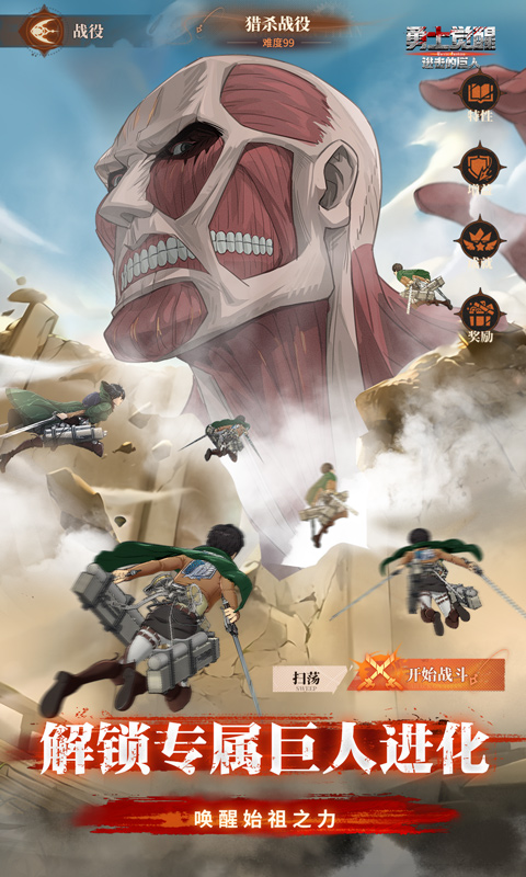 调查兵团总部,温馨宿舍与训练场,日常任务中隐藏着无数秘密与彩蛋。活动玩法多样,新服开启不断,跨服兵团战、壁外竞速赛常驻,与全服玩家共筑人类最后的希望!海量福利放送,零氪也能成为人类最强的士兵!