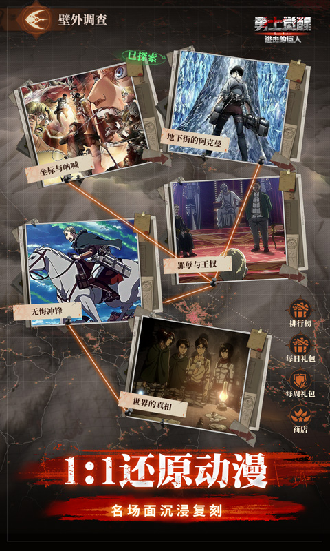 托洛斯特区攻防战、女巨人捕获作战、厄特加尔城死守、玛利亚之墙夺还战、地下室揭秘、马莱奇袭,所有经典战役由你亲历!剧情多线分支,你的每一个抉择都将影响同伴的生死与故事的结局走向!