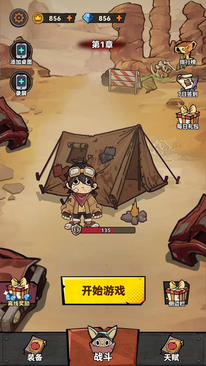 游戏开始时,玩家只有一个简陋的帐篷和有限的物品,身处在一片陌生的废土中。四周是一片荒凉,夕阳西下,映衬出破碎的城市轮廓。智慧与勇气是生存的唯一法则,玩家需要四处探索,寻找可用的物资。每一个角落都有可能藏着宝贵的资源,从废弃的汽车到破旧的房屋,甚至是流浪者留下的遗物,玩家必须用敏锐的观察力和灵活的身手来搜寻。