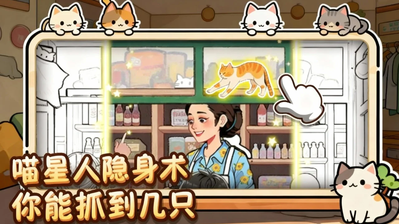 《猫儿找不停》结合了传统的寻找物品以及解谜元素,玩家需要在每个关卡中找到隐藏的猫咪。每一关都有独特的主题,不同的场景设置使得每次寻喵的过程都充满新鲜感。玩家必须仔细观察每一个细节,利用敏锐的观察力和推理能力,才能成功找到每一只猫咪。
