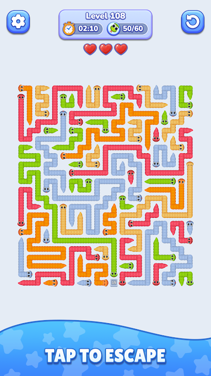 《蛇摆大师》的玩法十分直观。你只需通过点击屏幕来控制蛇的移动,计划每一次的前进方向。每个关卡都有明确的目标,你需要在规定的时间内完成迷宫挑战。在这个过程中,策略至关重要,因为你需要预测每一步的后果。一个不小心的选择可能会将你送入死路,因此谨慎思考和快速反应将是你成功的关键。