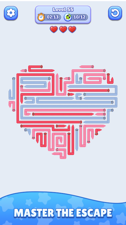 在《蛇摆大师》中,紧迫的时间限制为游戏增添了更多的刺激和紧张感。每个关卡都有计时器,随时在提醒你要抓紧时间。你的每一步都必须经过深思熟虑,在时间即将耗尽之前找到出口。这个元素不仅增加了挑战性,还让每一次游戏都充满了紧迫感和成就感。