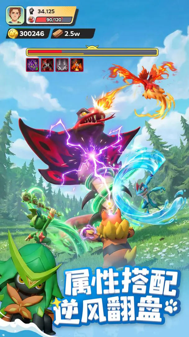 在面对强大的领主时,单纯依靠数值的堆积已不能赢得胜利。《帕萌战斗日记》引入了水、火、岩、雷四大元素的克制关系,让战斗更加充满策略性。合理的搭配阵容,利用属性相克的优势,玩家能在面对更强的敌人时实现以弱胜强的策略爽感,体会到战斗的智慧与乐趣。