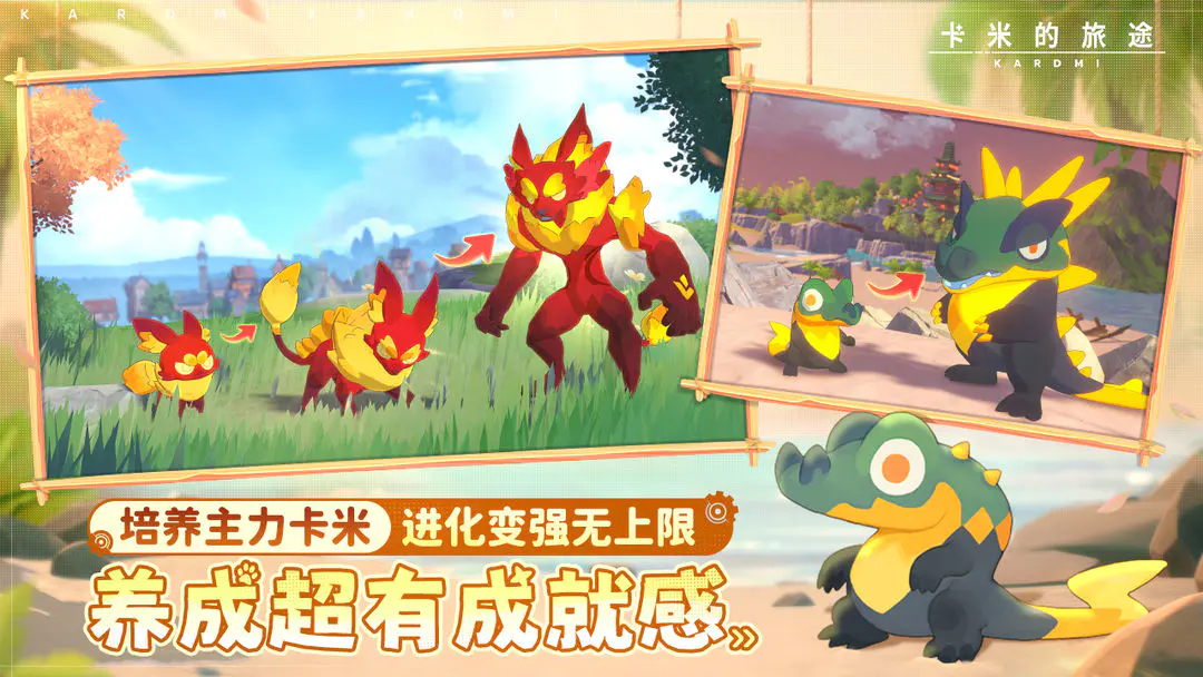在《卡米的旅途》中,捕捉卡米只是开始,真正的挑战在于如何培养这些神奇的生物。每只卡米拥有九种不同的属性,包括水、火、草、电、风、地、斗、恶和超。通过战斗和训练,你可以提升卡米的能力,使他们逐渐成长。在你付出努力后,卡米将会进化,变身为更强大的形态。每一个进化的瞬间,都将让你感受到他们成长的喜悦。