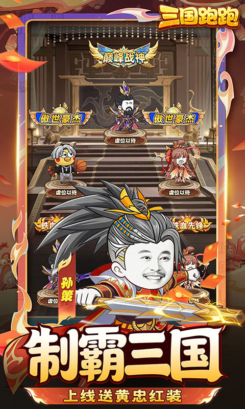 全新0.05折魔性三国卡牌手游《三国跑跑》已就位,上线送名将黄忠*1、VIP3、元宝*6480、铜钱*100w、红色1星4件套*1,升级免费送满级VIP15,海量资源、武将免费拿,登录再送UR任选1000抽,顶级武将轻松养成,躺平挂机也能招兵买马,这里有接着奏乐接着舞的皇叔,也有盖饭的曹操和瓜保熟的关羽,海量有梗武将等你招募,助你轻松称霸三国,速来开启你的三国征程吧!