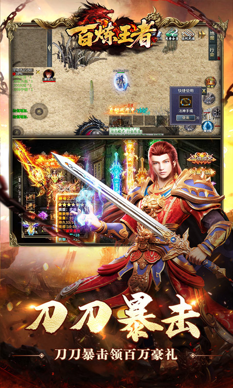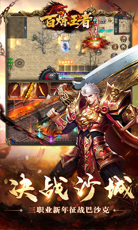 《百炼王者(新年刀刀爆百万)》是一款高福利三职业高爆版本。玩法丰富,结合攻速专属、剧情、沉默、复古等元素,战士、法师、道士,三大职业,各不相同,不一样这技能特色,给你不一样的体验,回归沉默打金传奇本色,一切装备货币材料靠打,时间称王!