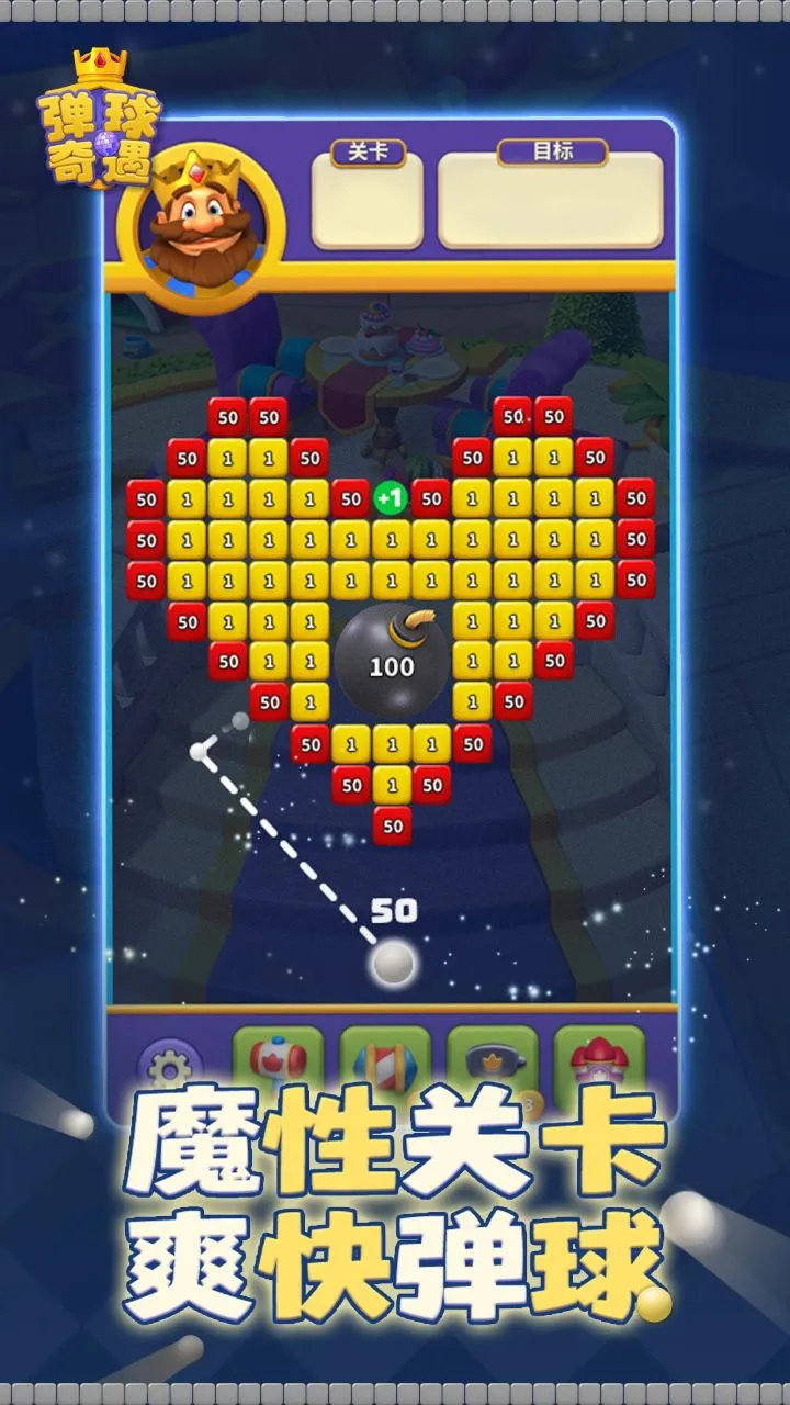 在“弹球奇遇”中,玩家将扮演一个勇敢的冒险者,利用弹球的力量来打破巫师设置的砖块和障碍。游戏以独特的物理引擎设计为基础,玩家需要通过精准的角度投射弹球,使其在游戏中弹跳、反弹和撞击,进而击破层层砖块,解锁通向国王的道路。