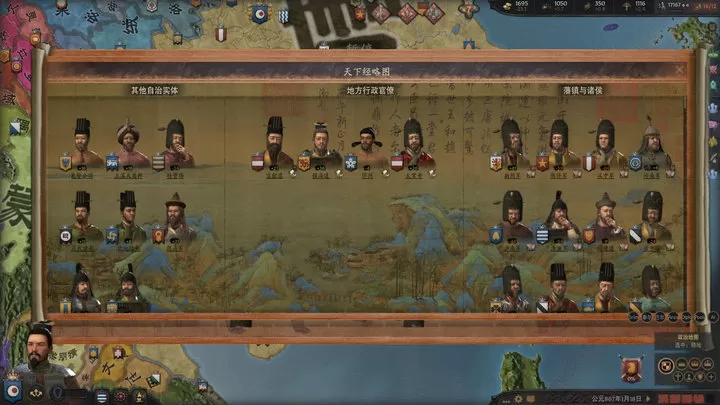 解锁“车书万里”革新后,玩家拥有强大权限,能对民州封臣进行直接任免或调整军府辖区。随后开启的“宫廷官员”革新让玩家掌握王国级流官的任命权,进一步强化官员任免和流转的灵活性。