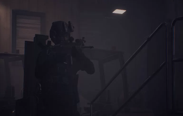 游戏的战场环境设计极具深度和多样性,从开阔的城市废墟到密林丛林,每种地形都有独特的优势与挑战。玩家可以利用环境进行隐蔽和伏击,同时合理利用障碍物作战。地形与光影效果结合,真实模拟战场中可能出现的情况,增加了战术执行的复杂度。游戏内还设有丰富的战术装备可供选择,玩家可以根据任务需求装备不同武器、装备和辅助装置,如夜视仪、爆破器材等,大幅提升战斗灵活性。