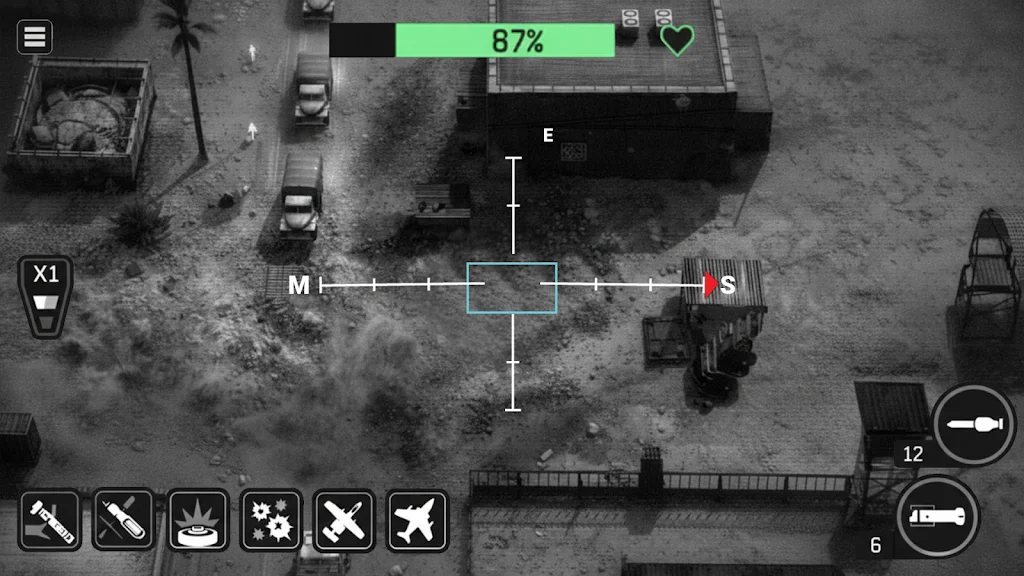 游戏提供多种武器配置,满足不同战术需求。无人机配备有高速制导导弹,适合远距离打击敌方装甲车辆和基地设施;重机枪则适合对抗步兵和轻装敌军单位。先进的瞄准系统支持自动锁定目标,提升打击效率。同时热成像和变焦视角帮助玩家在复杂的战场环境中快速识别敌方单位。丰富的武器选择让玩家可以根据任务需求灵活调整战术,体验不同风格的战争玩法。