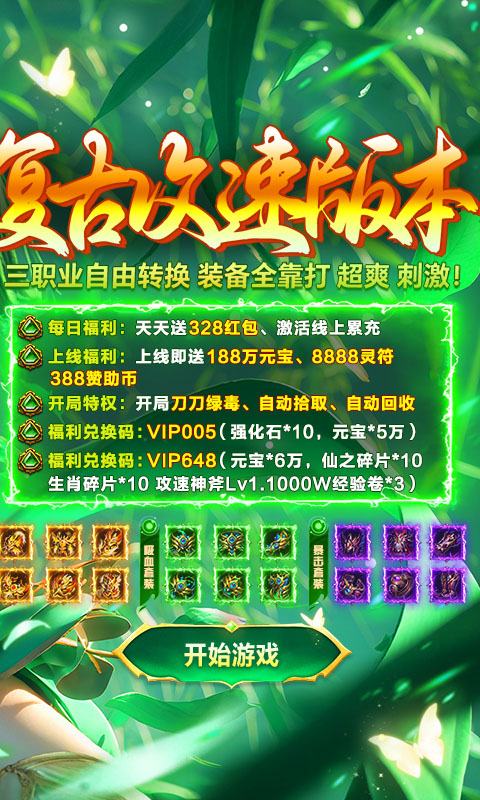盖娅战记(复古红包版)是一款复古三职业攻速传奇,游戏永久内置3折福利,每天免费赠送328红包,激活线上累充。三职业刀刀绿毒打怪效率拉满,三职业可自由转换,多种新颖玩法PK、鏖战沙巴克。游戏开局还送赞助币免费开通首充大礼包、黄金、铂金、钻石、王者4大赞助,真正为零氪玩家所打造!