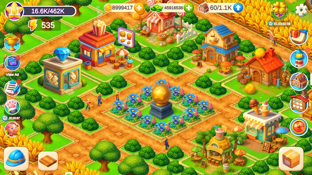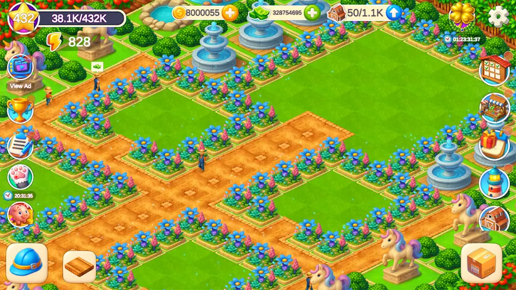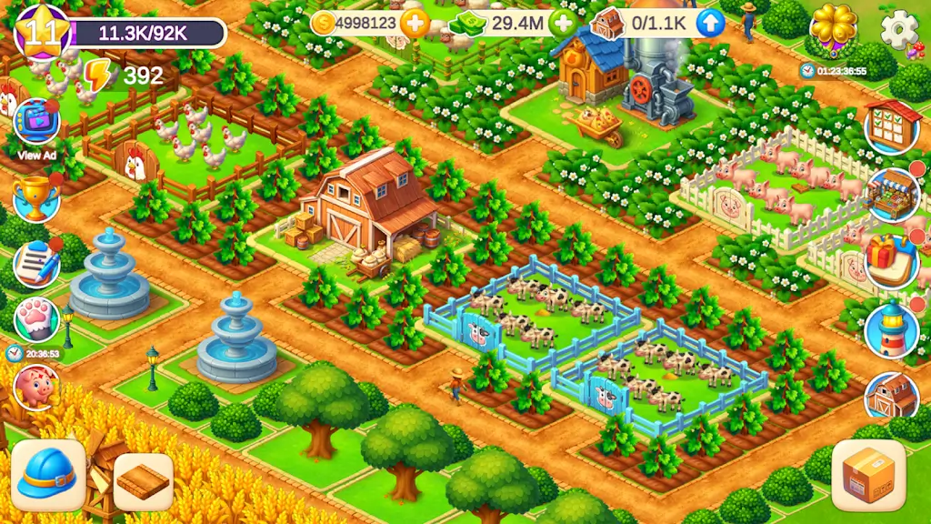 在农场丰收模拟中,建造是游戏的核心元素。玩家可以自由规划农场布局,选择不同风格的建筑和装饰品来打造具有个性化的乡村农庄。无论是存放农具的谷仓、温馨的小屋还是装点环境的园林景观,都可以随意组合,形成一个美观又实用的农场空间。随着游戏进度推进,更多高级建筑将被解锁,丰富的建筑类型和装饰风格满足玩家多样化的审美需求。