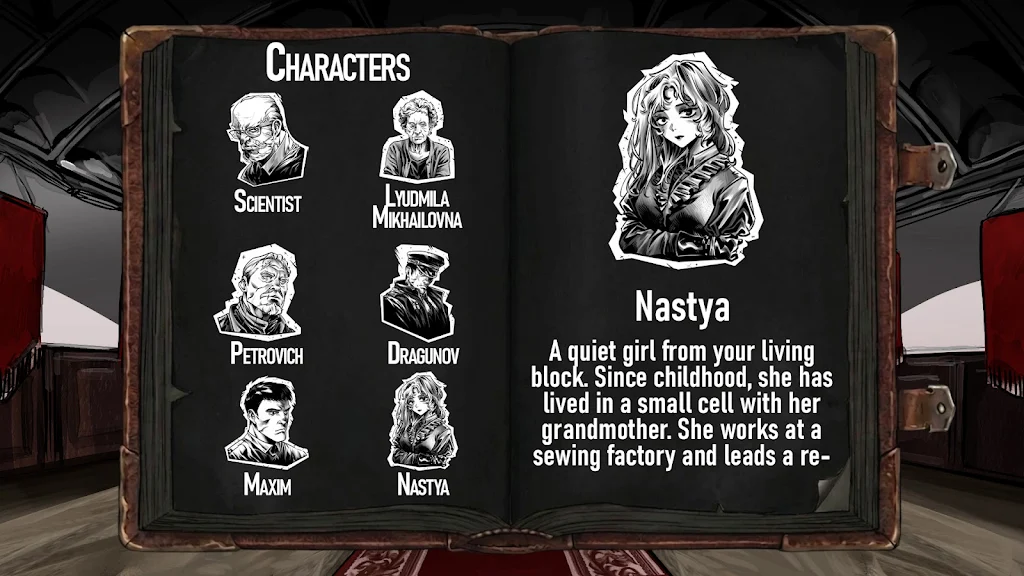 命运抉择 生存小说是一款融合文字角色扮演与生活模拟的视觉小说,带领玩家深入萨莫斯堡宇宙——一个受另类苏联文化与极权主义氛围影响的冷峻世界。游戏设定在一个封闭的技术官僚社会中,玩家将体验到压抑的制度束缚与复杂的人际关系,面对不可预测的黑暗力量和严苛的生存考验。
