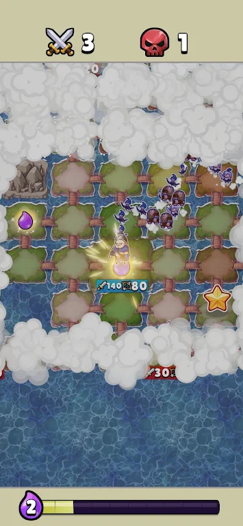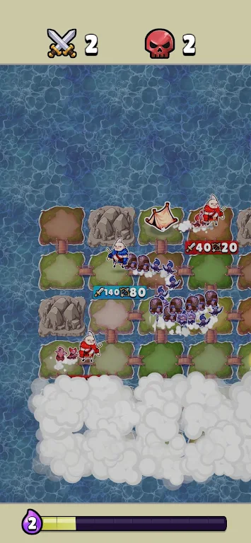 《岛屿征服:英雄之战》采用半自动战斗机制,当两名英雄遭遇时,战斗自动进行,但前期的部队组合和升级策略将直接影响战斗结果。战斗中近战和远程单位的合理搭配,是取得胜利的关键。不同单位间的协同能产生出乎意料的效果,玩家需要深刻理解兵种特性,因地制宜地调整军队配置。环境因素同样重要,利用治疗区和临时增益点可以扭转战场上的劣势。