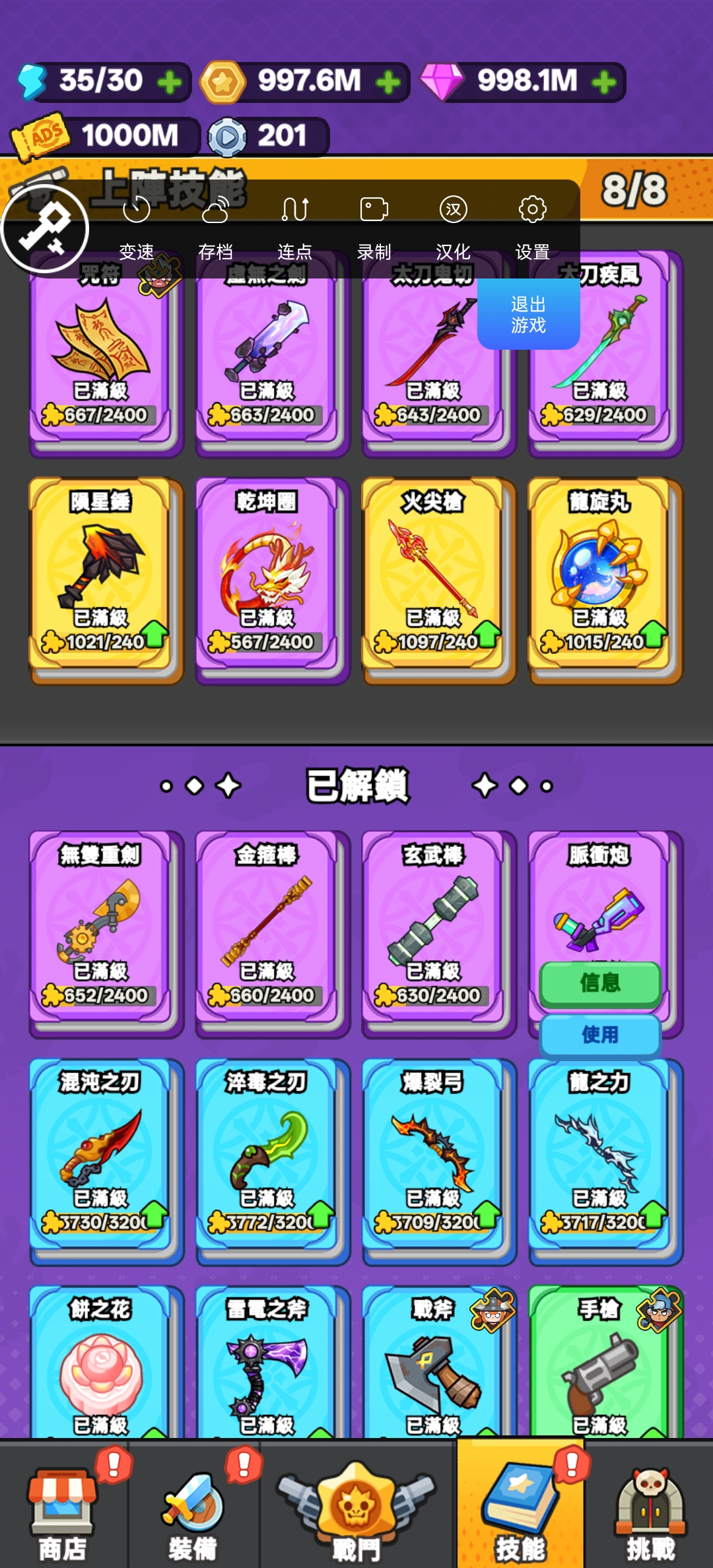 玩了一段时间的【八门神器专属存档】