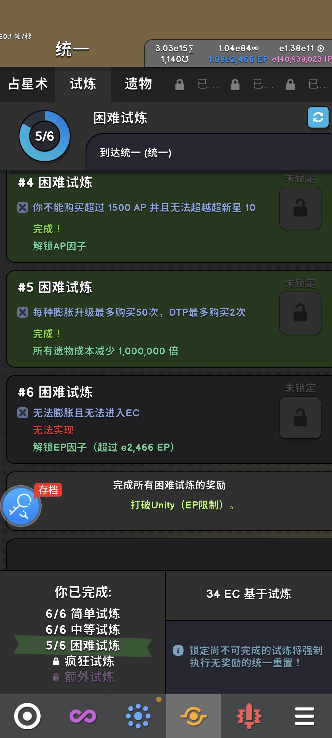 解锁统一,通过困难试炼5,大量灵魂