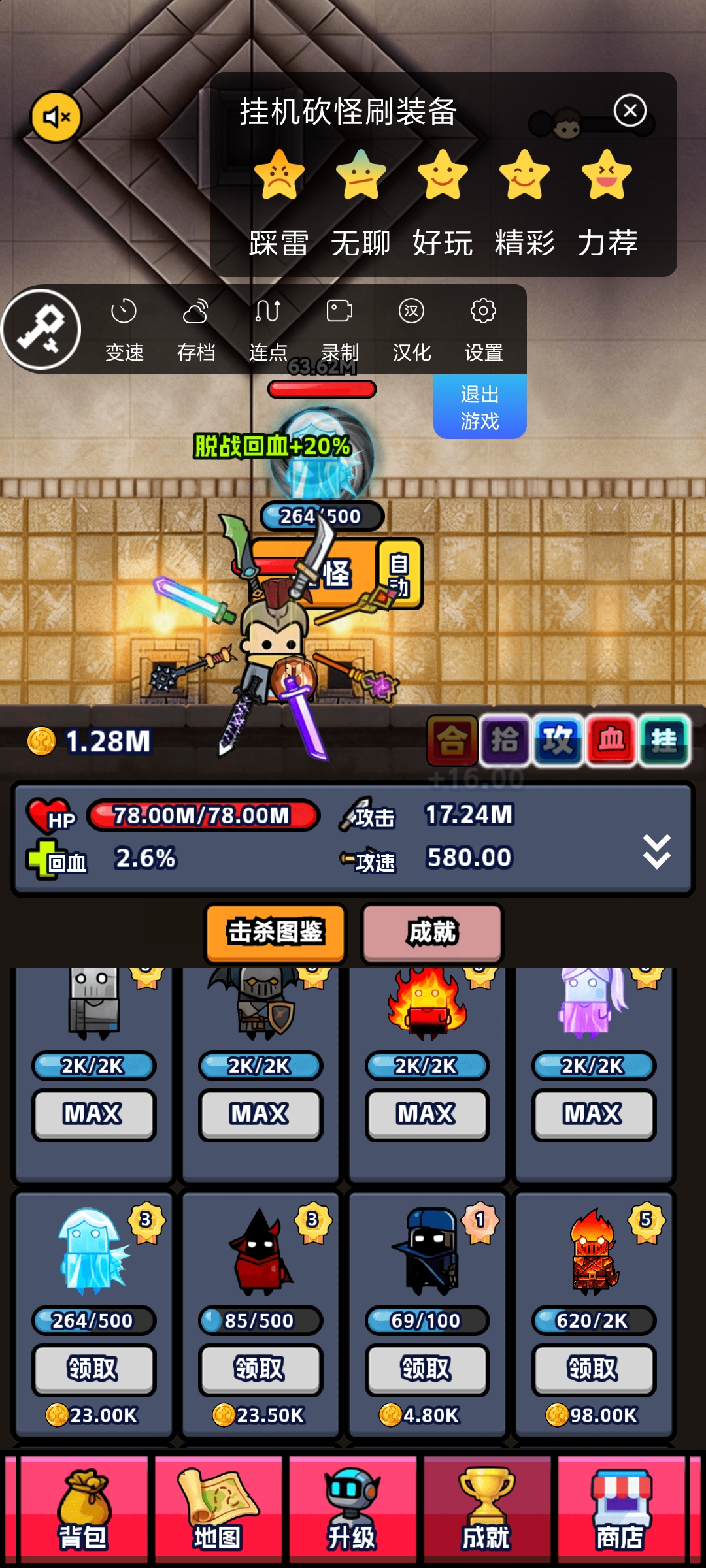 【挂机砍怪刷装备 存档 】 全满级,图鉴全满。