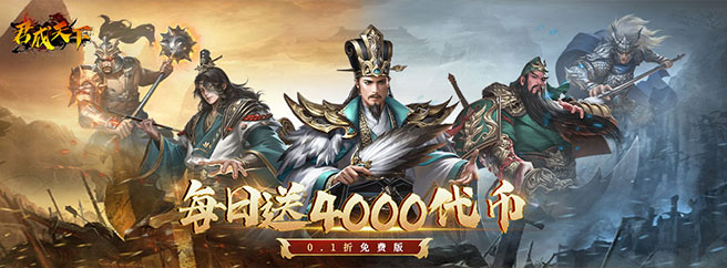 【君成天下】0.1折三国争霸,每日送4000元代币。游戏以三国历史为题材背景,上线送VIP15,自由建立属于自己的主城,征召三国名将。