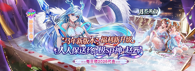 保送终极sp神将,每日免费2026代金,王者之路人人再送30000代金,免费每日送ur+核心战将,还有无限连抽送送送!