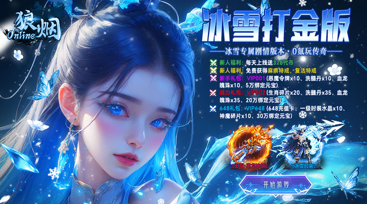 狼烟-Online(经典冰雪免费版)是一款超高人气的冰雪题材传奇游戏,内置3折充值系统,天天上线领取328代币,一切皆可白嫖,游戏拥有精美的画面,炫酷的特效,强力的装备,惊爆眼球的神技,激烈的野外pk,让你随心酣战斗不停。