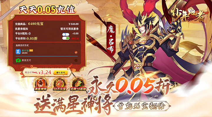 游戏名称:少年跑者(0.05折送神将)游戏标签: 西游 , 挂机