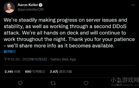 就在稿子之前,《守望先锋:归来》的开发组发布了新的通告,通告中还提到有关排队,服务器以及稳定等方面的内容。研究小组说:“有些问题我们已解决,其它的问题也正在开始处理,但是球员们仍将不得不排起队伍。”