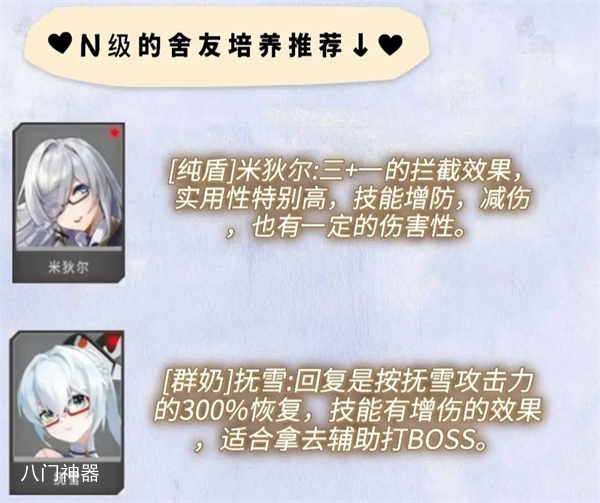 4、游戏中培养一个角色是非常费劲的,不知道怎么培养的话可以根据上面的推荐进行培养。